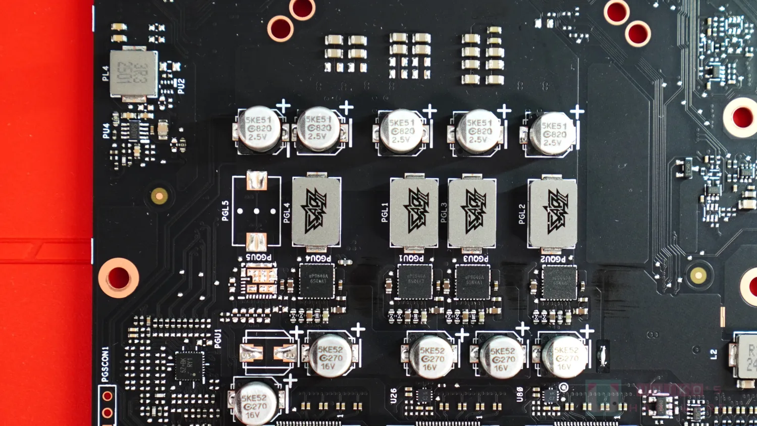 由於使用 PCIe 8PIN,所以 PEG 金手指的供電部份也有相應提高,負責一些主要電路。