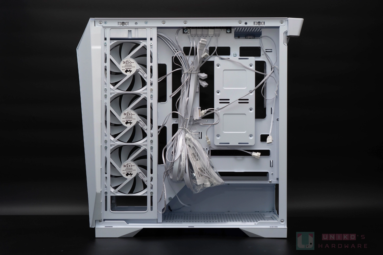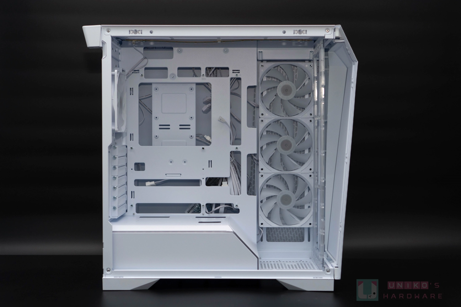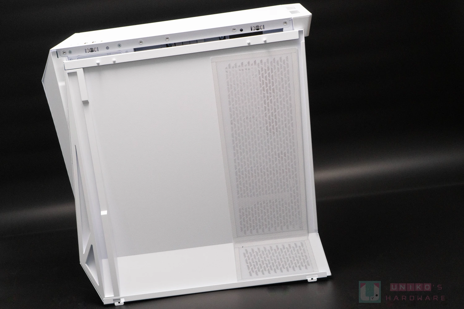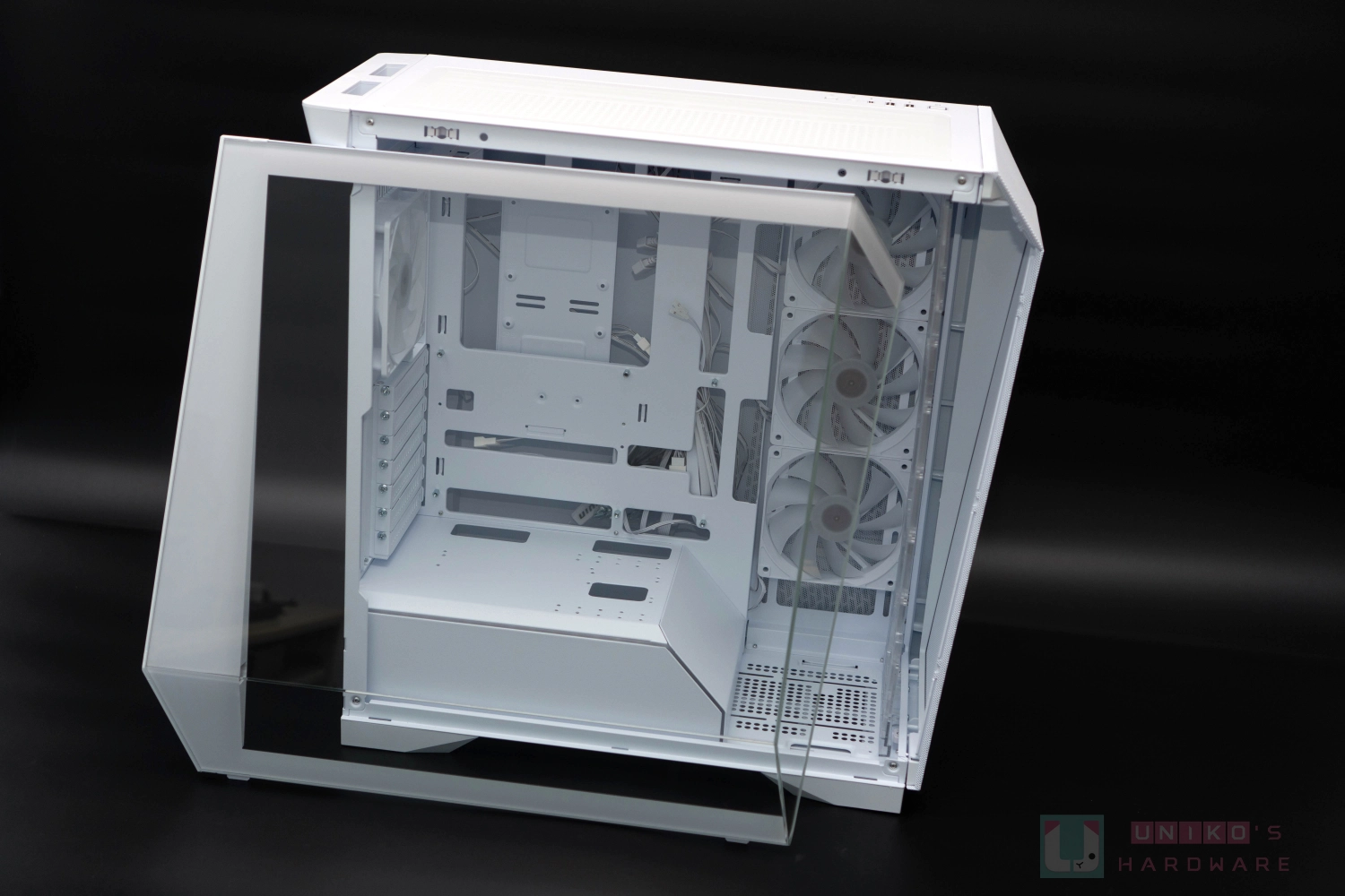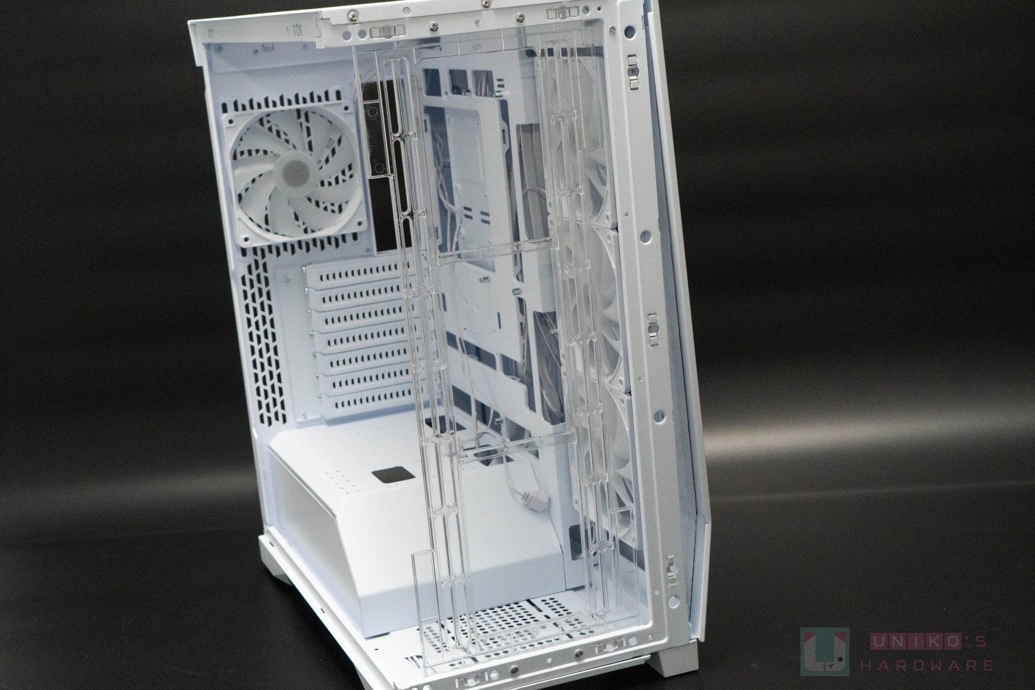 緊接著看到機殼內部空間,PRISM 的側面板皆採無螺絲設計,直接輕微施力即可將面板卸下,其中,透側的玻璃面板為一體式的設計。