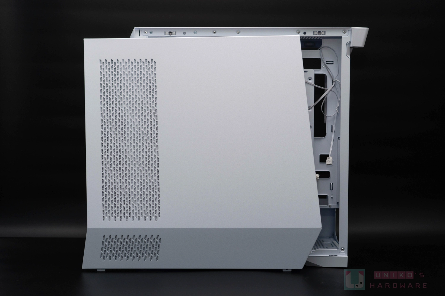 另一側對應側邊風扇位置有通風網孔,側板跟透側面都是立體線條設計。