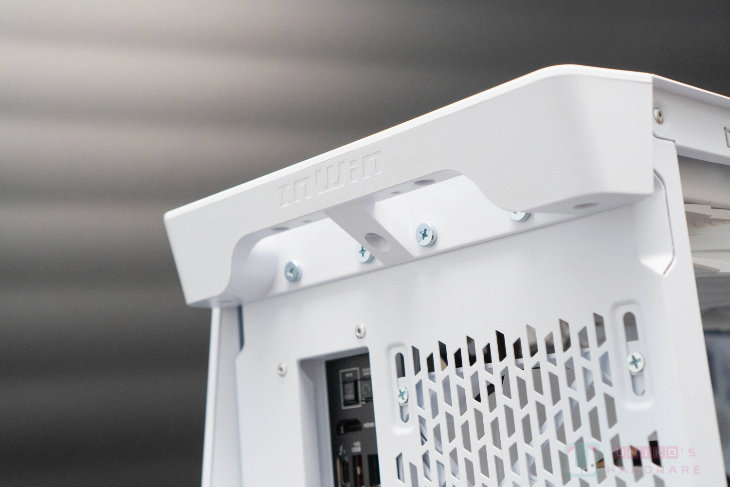 後方有尾翼手把設計,方便使用者必要時將整台機殼提起,手把上也有 InWin LOGO。