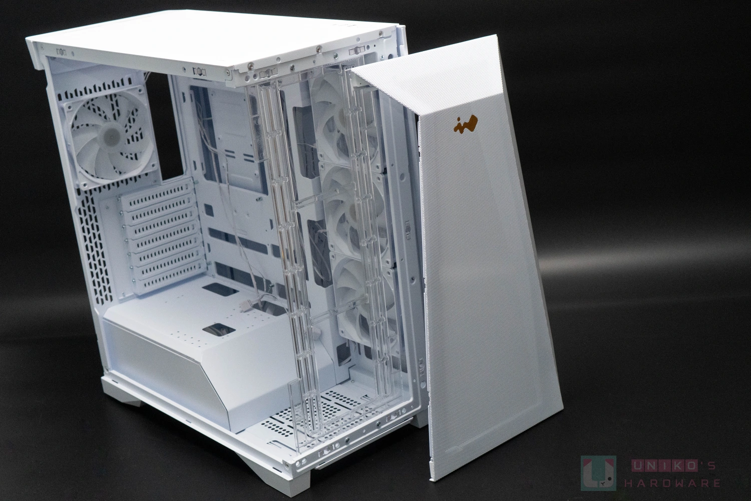 機殼前方面板為網孔進氣罩設計,整體線條感相當強烈,中央上方標有 InWin LOGO 作為簡單點綴。