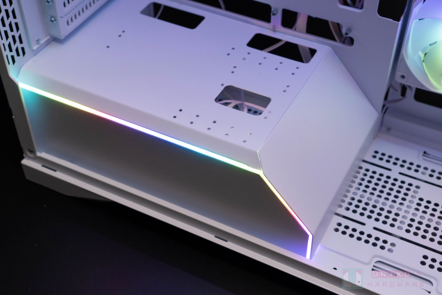另外,電源艙側邊預先接好 ARGB 燈條,後續接上電源後會有燈效區塊佈局。