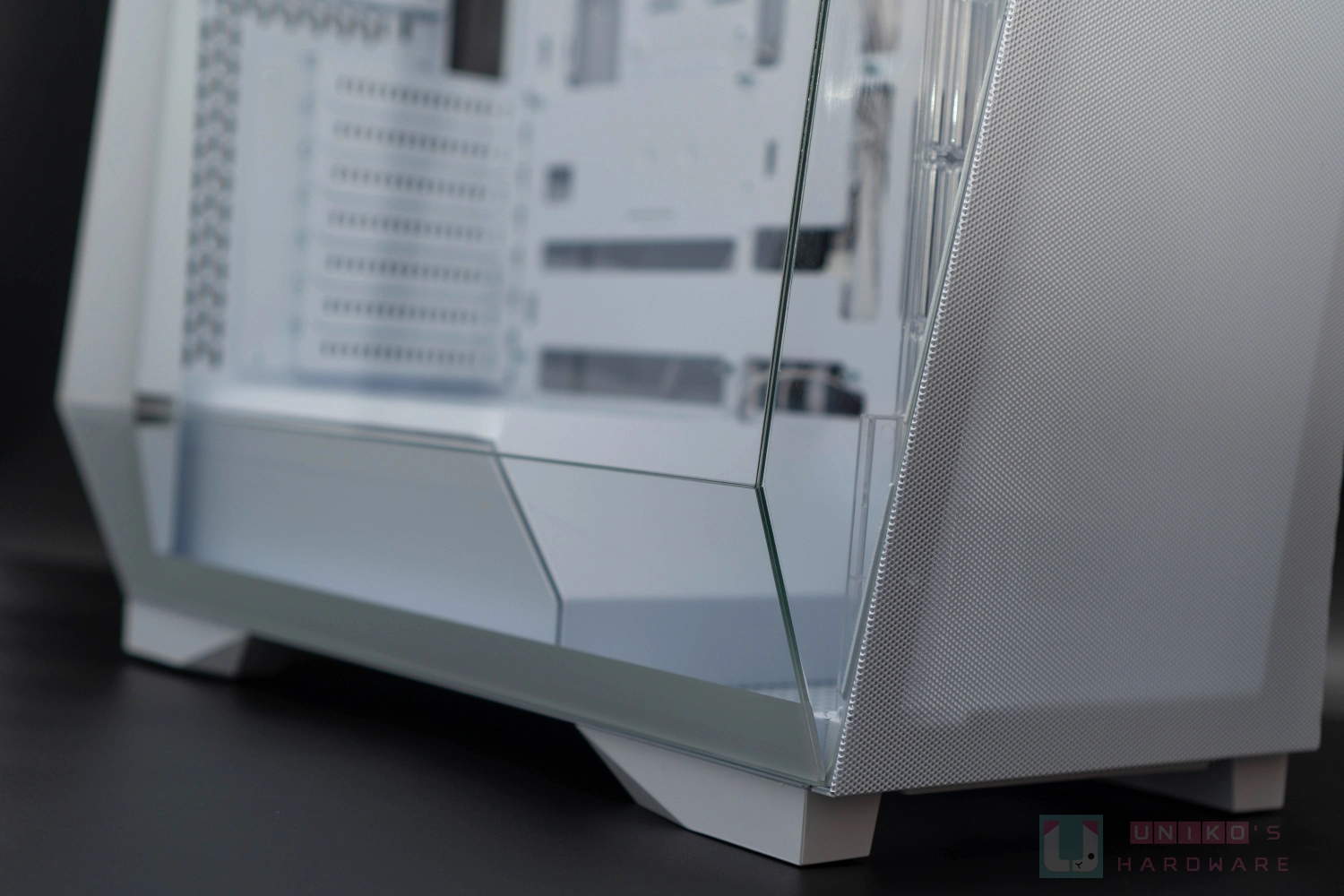 機身使用三片無縫拼接設計玻璃作為連結,無 A 柱的設計讓觀感更加乾淨有型,加上玻璃相當清澈通透,讓玩家對內部零件一覽無遺。