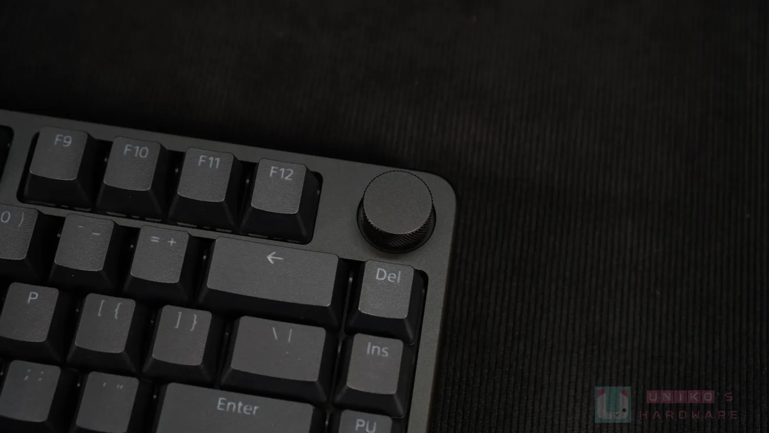在鍵盤的右上角有一個轉輪,用於快速調整音量大小,菱格紋路轉輪阻力適中,並不會因誤觸而調整音量大小。