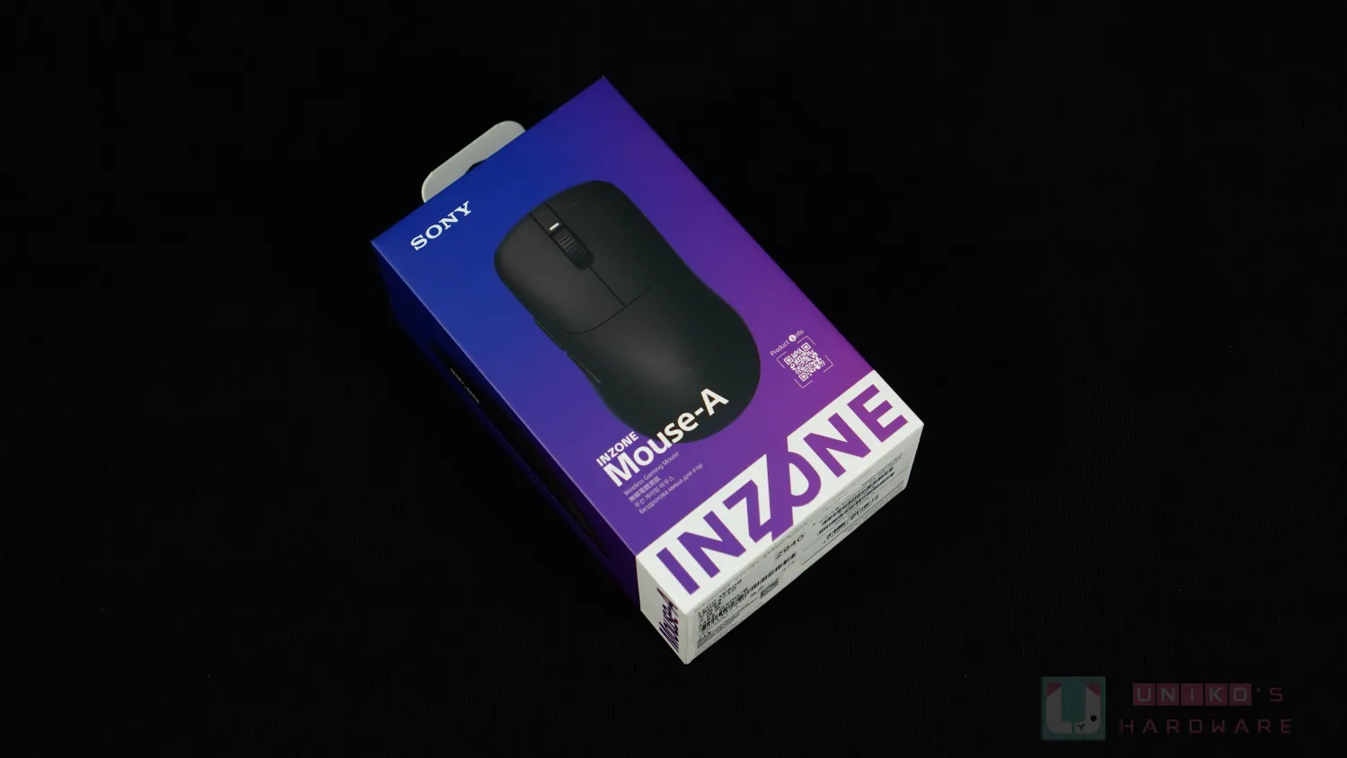 依然採用了 INZONE 標誌性的色彩,外盒也是一貫的風格,在外盒正面上印有產品資訊的 QR CODE,在外盒背面印有 Mouse-A 的特色,如完美的 48.4 克輕巧的重量、最大 90 小時的續航力等。