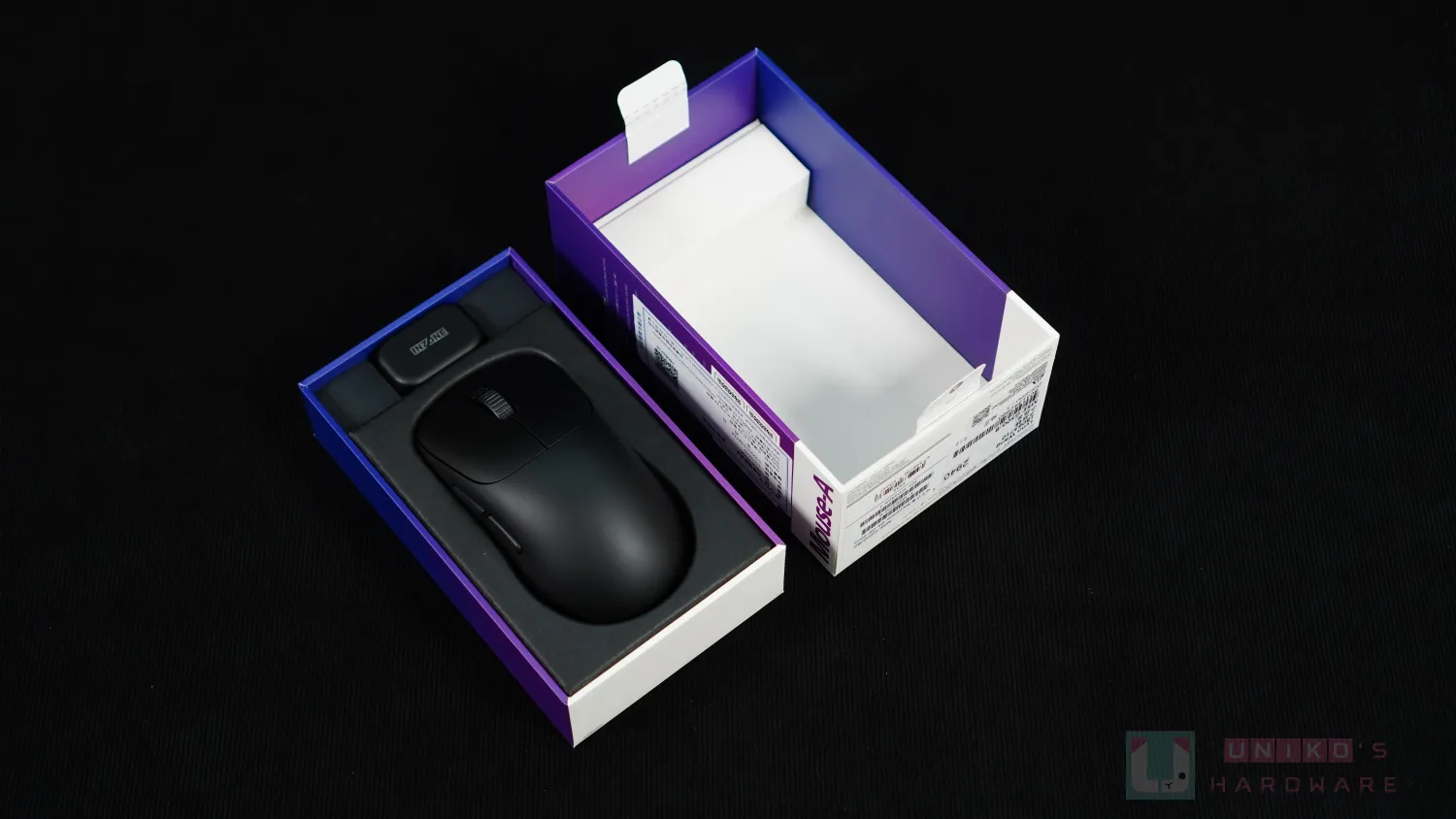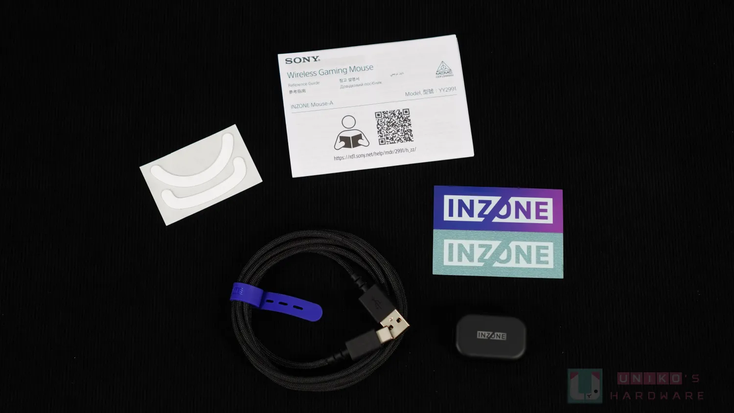 拆開外盒首先映入眼簾的就是 INZONE 首款滑鼠 Mouse-A 及其接收器,在滑鼠的下方還有印有簡易使用的滑鼠配件的說明盒。