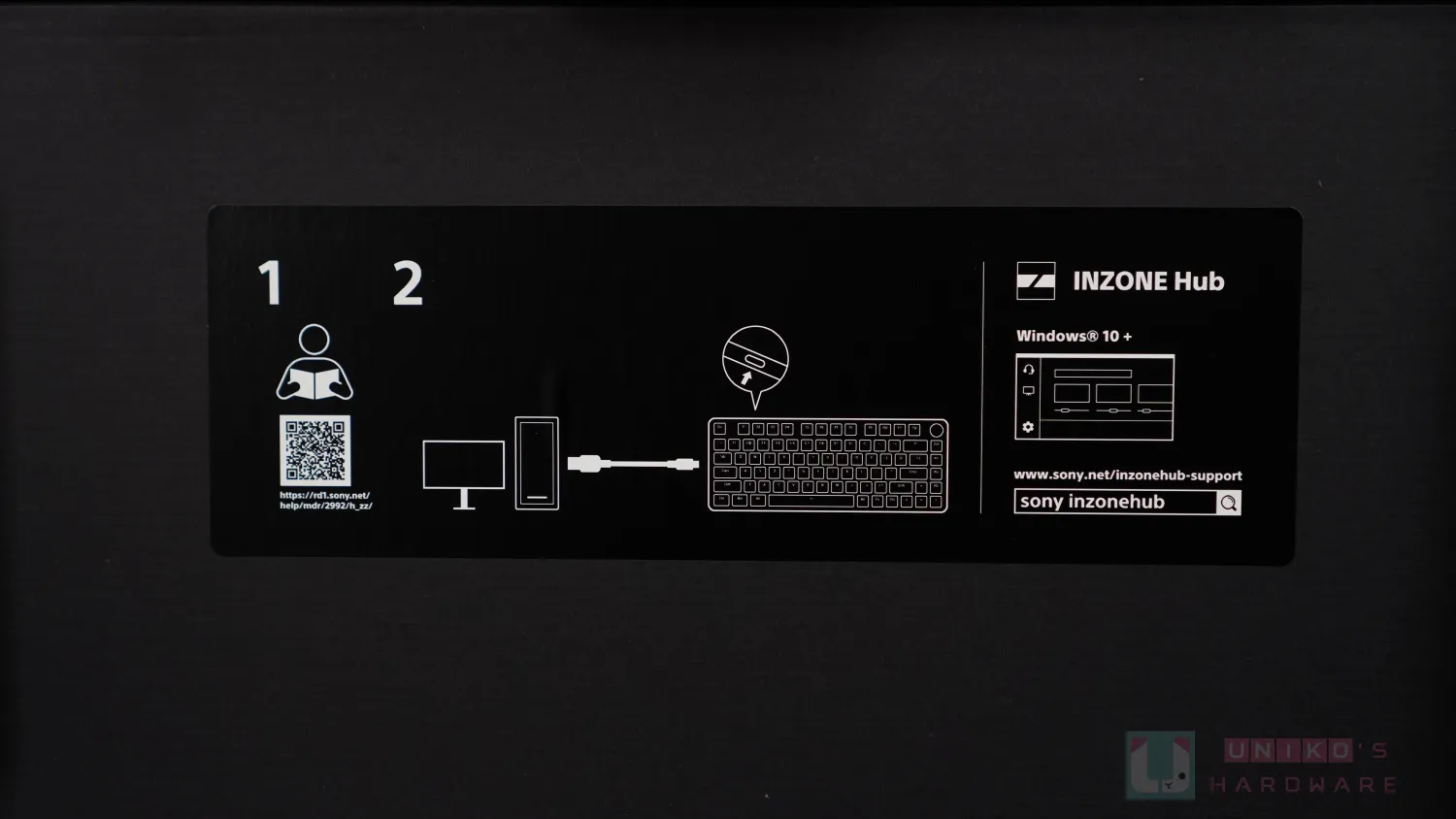 翻開外盒後首先映入眼簾的是上方的說明,使用簡易的圖文表示法並配有 QR Code 說明書,同時貼心的告知 INZONE HUB 的下載地址。