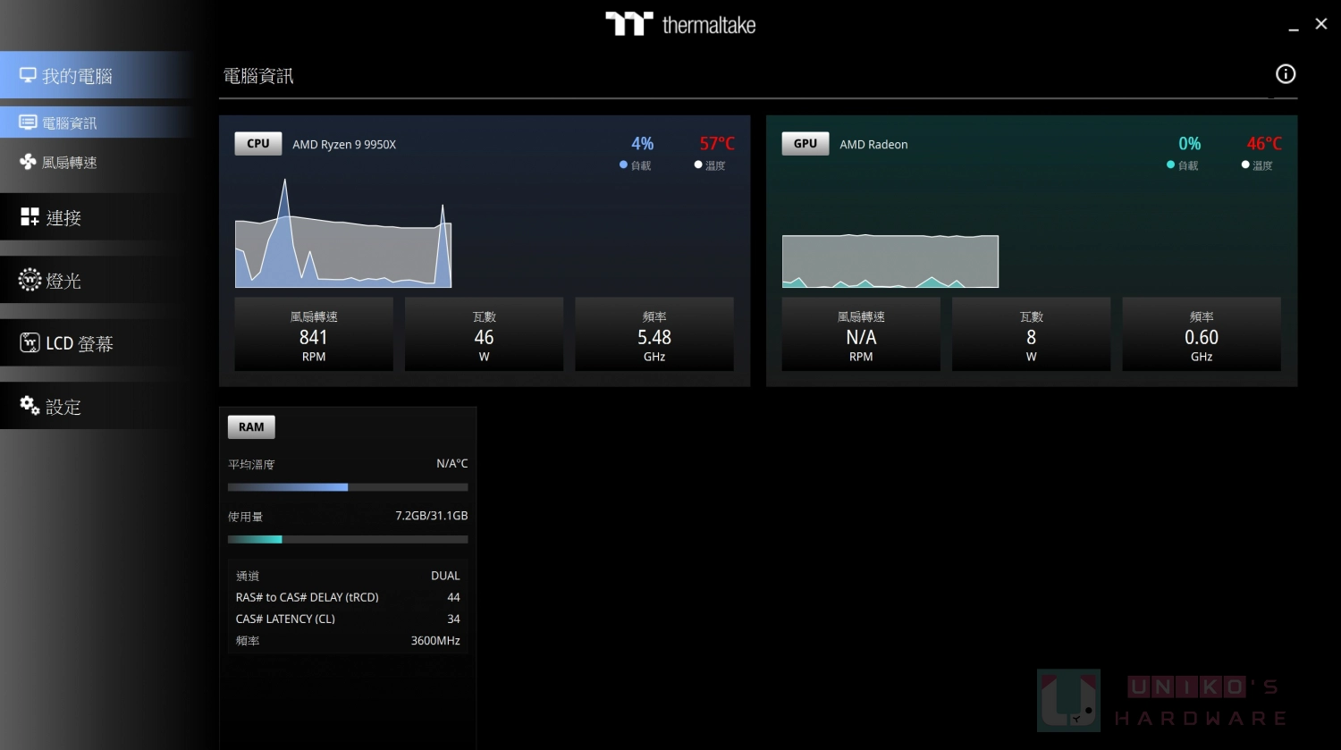 軟體方面曜越提供全新的 TT RGB PLUS 3.0 軟體,內部可直接偵測主要硬體的即時參數。
