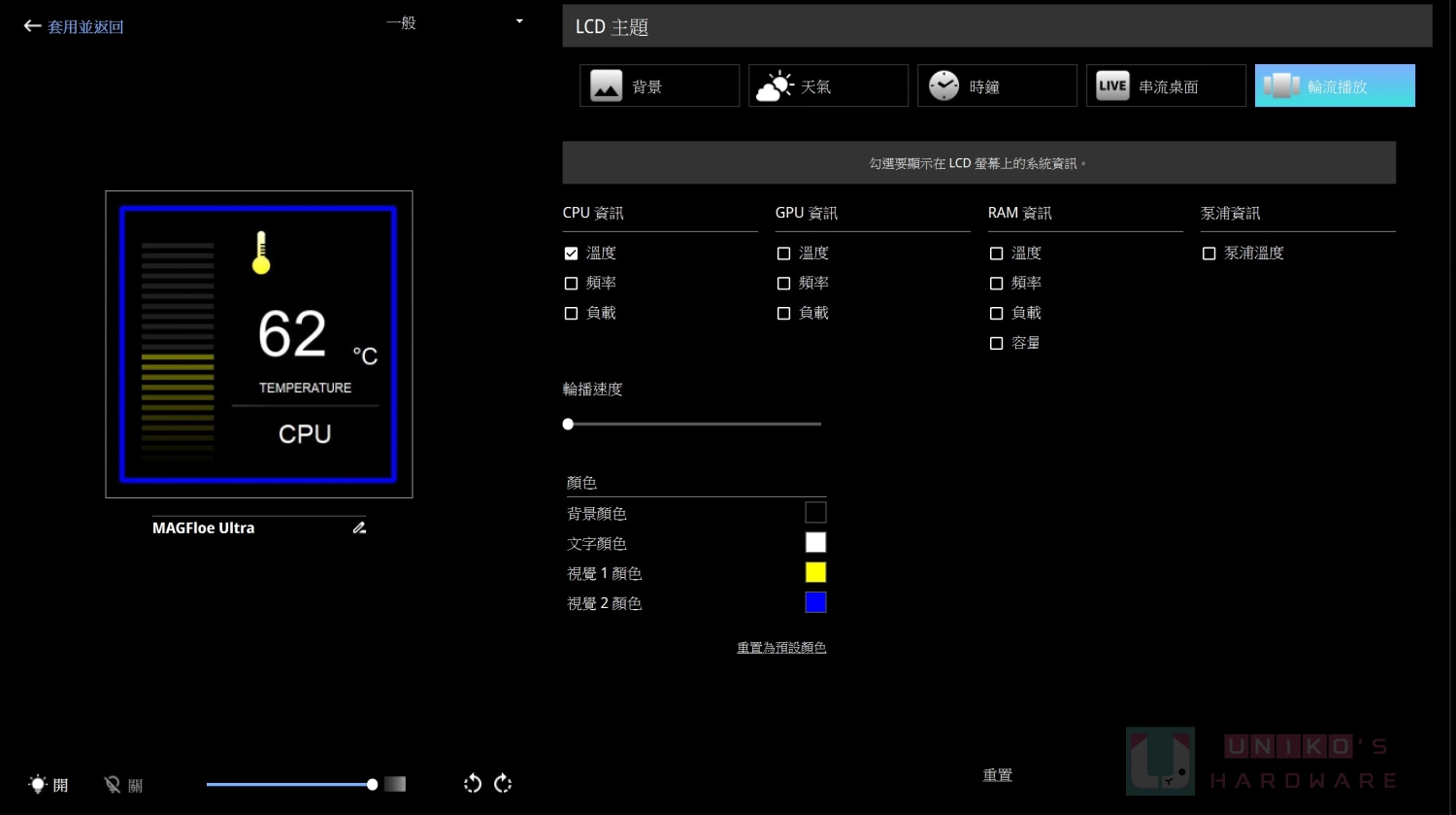 出廠預設為「輪流播放」模式,也就是會在勾選的硬體參數之間切換顯示資訊。