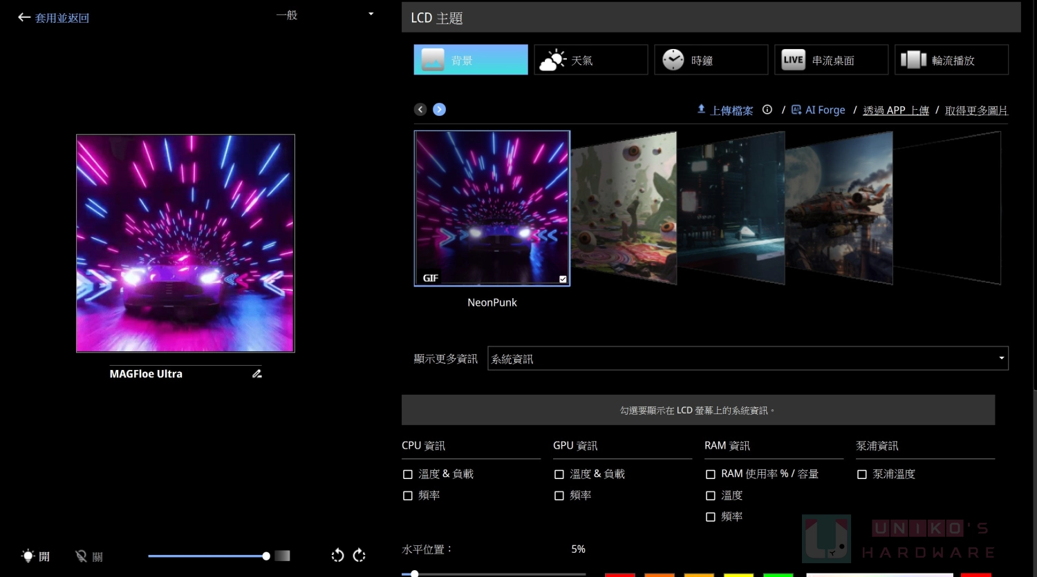 而 LCD 螢幕部分則是針對水冷螢幕顯示,點選後就可進一步客製化。