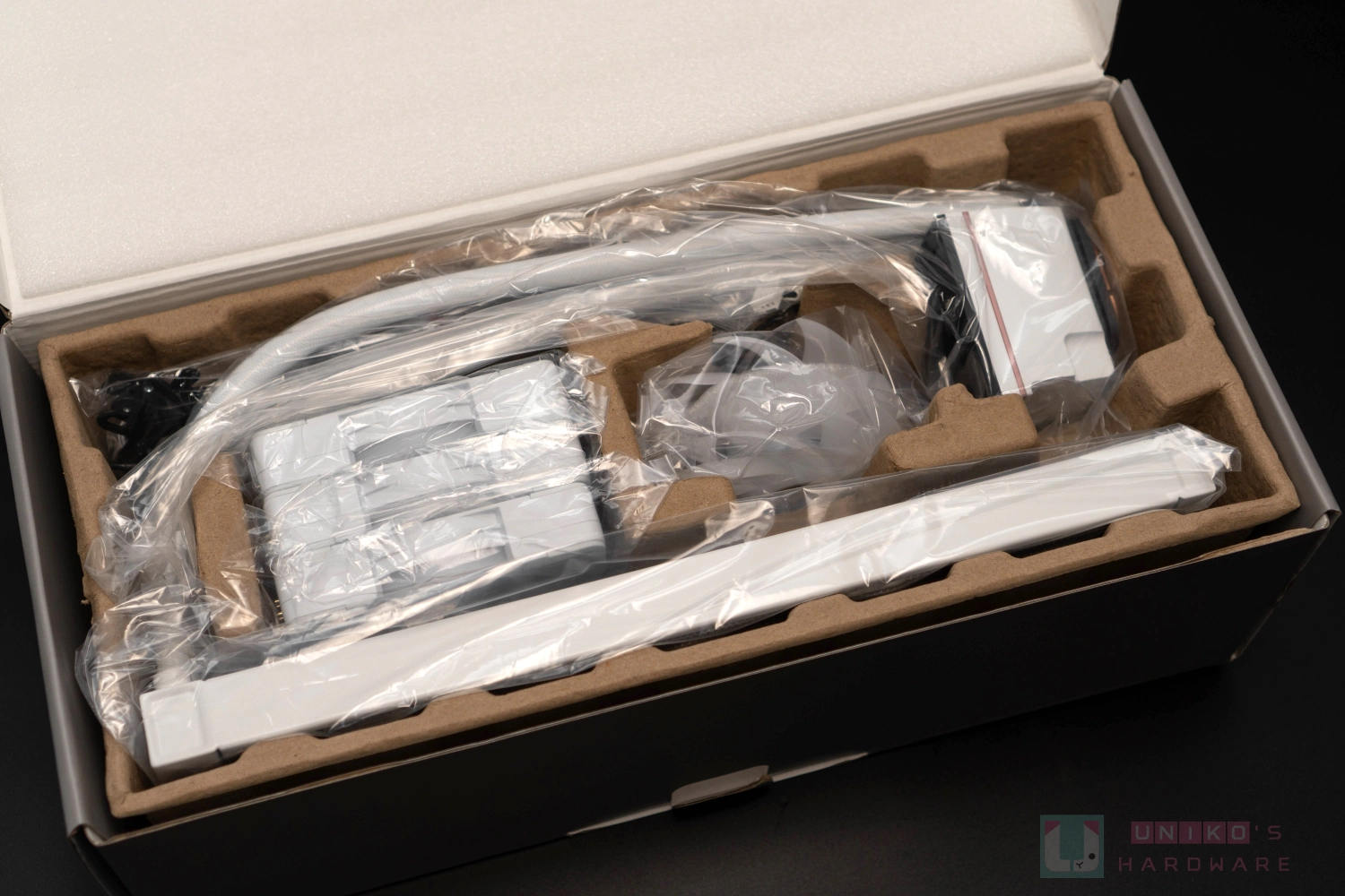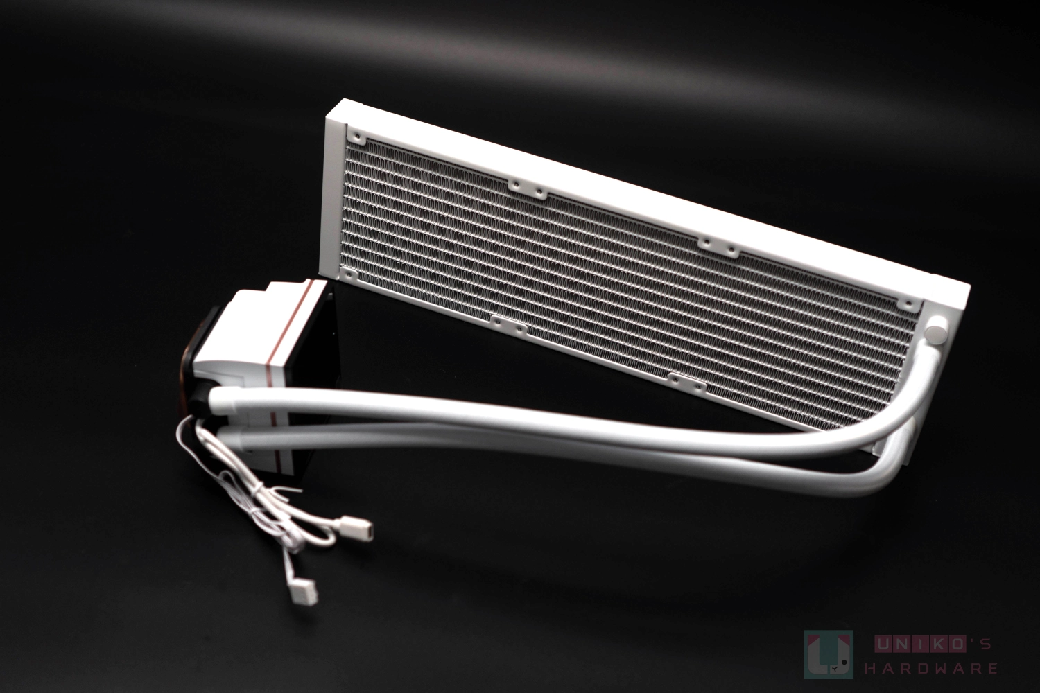 現在來看看水冷本體,冷排規格是 360 mm 尺寸,另有 420 mm 版,比較可惜的是沒有推出 240 mm 版本,小型機殼玩家可能需要另尋目標,看來這系列產品看來是面向使用中高階設備、且散熱空間充足的玩家。