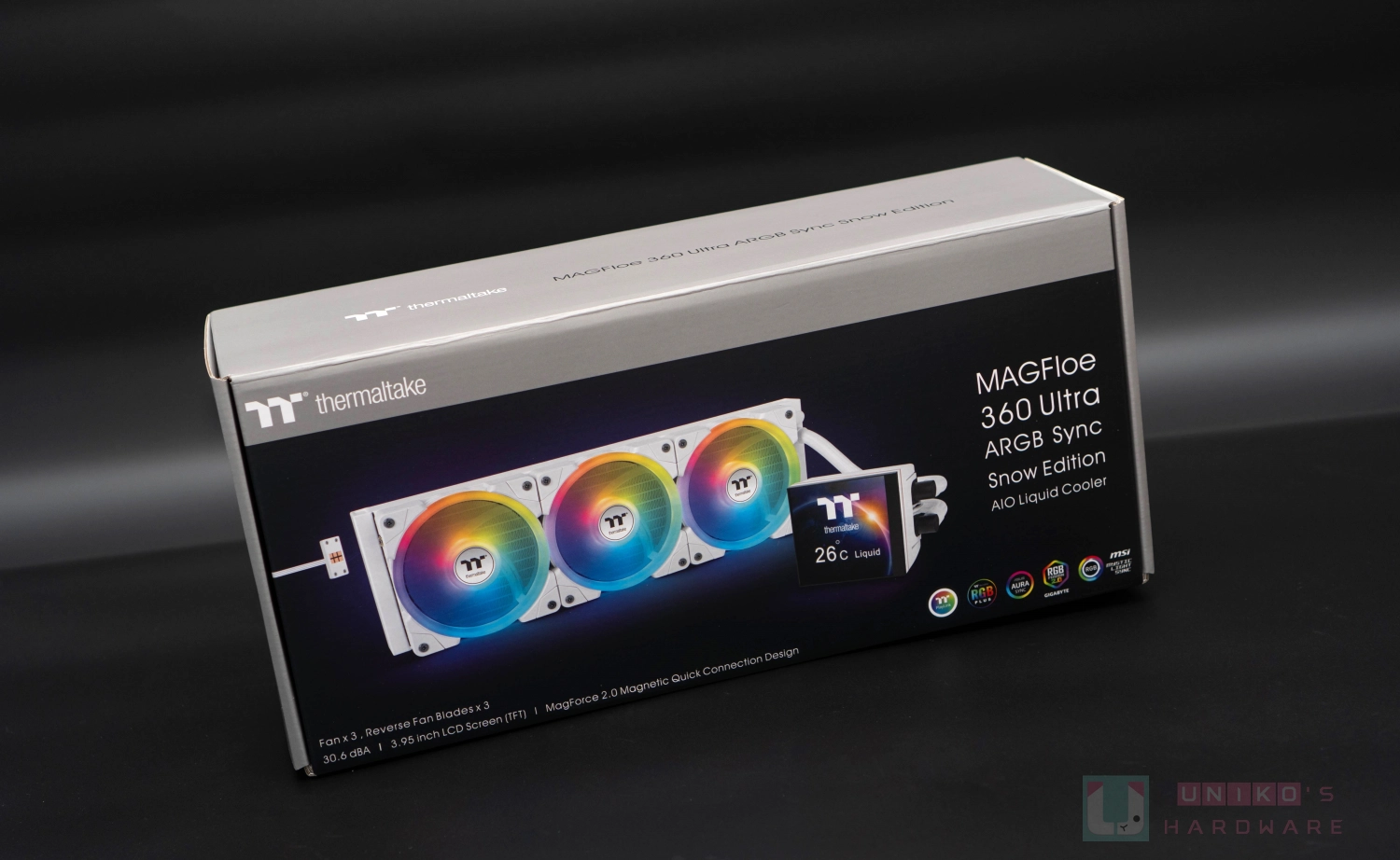曜越近期推出旗下全新一體式水冷散熱器 Thermaltake MAGFloe Ultra ARGB Sync,系列分為 360 mm 和 420 mm 兩種尺寸,配色有黑色和雪白版兩種選擇,我們這次評測的是其中的 MAGFloe 360 Ultra ARGB Sync 雪白版。
