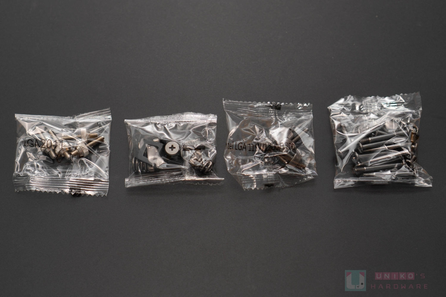 至於各類腳位和風扇固定的螺絲,則各自有獨立包裝,包裝皆標示對應腳位。