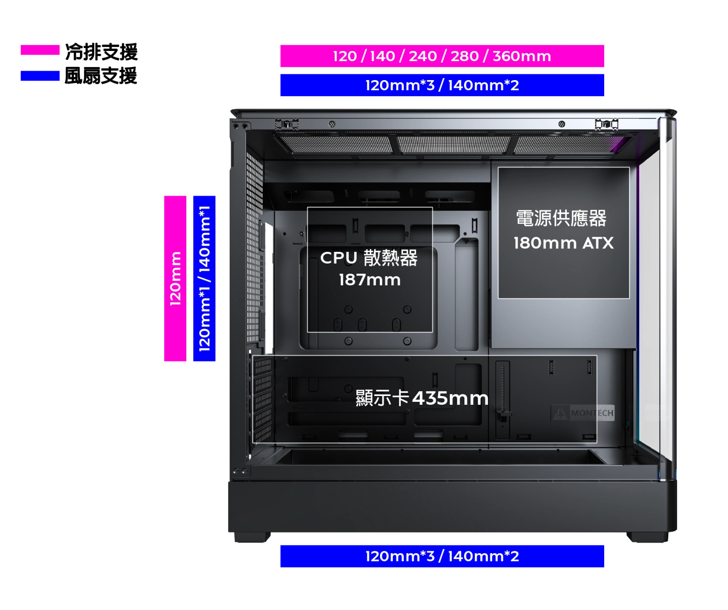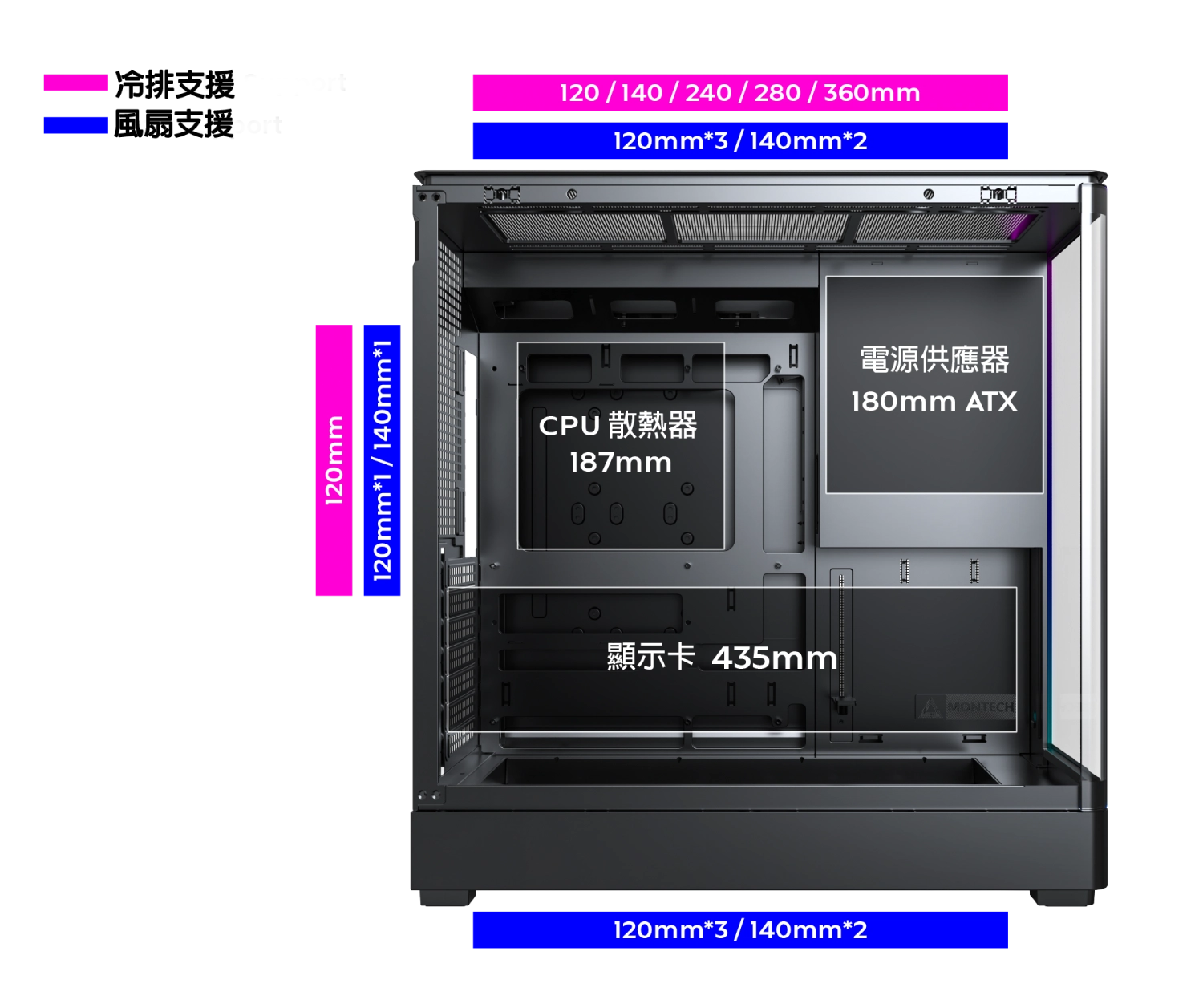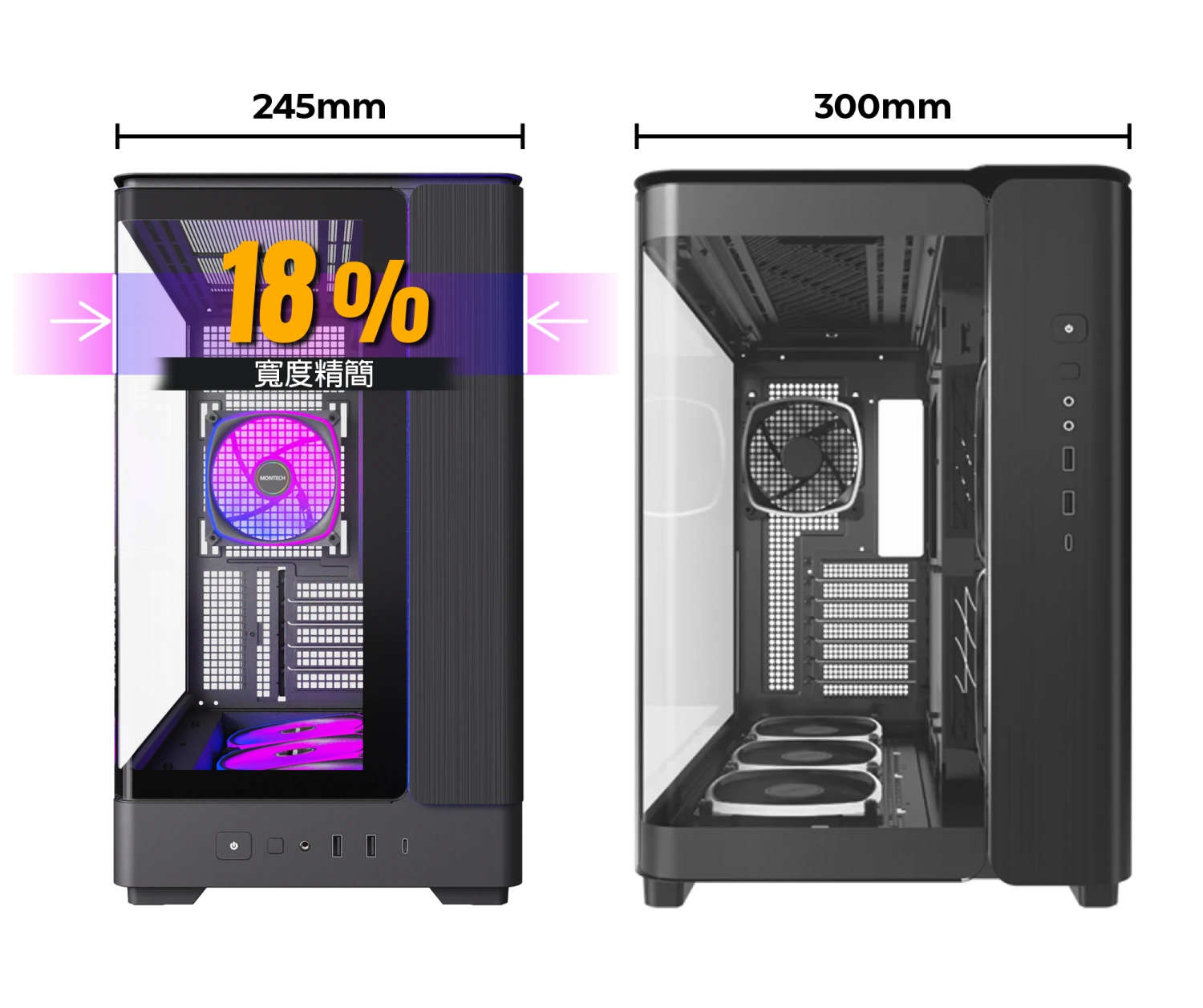 更精實的雙艙結構提升氣流效率並隱藏線材,打造既俐落又強悍的組裝體驗。