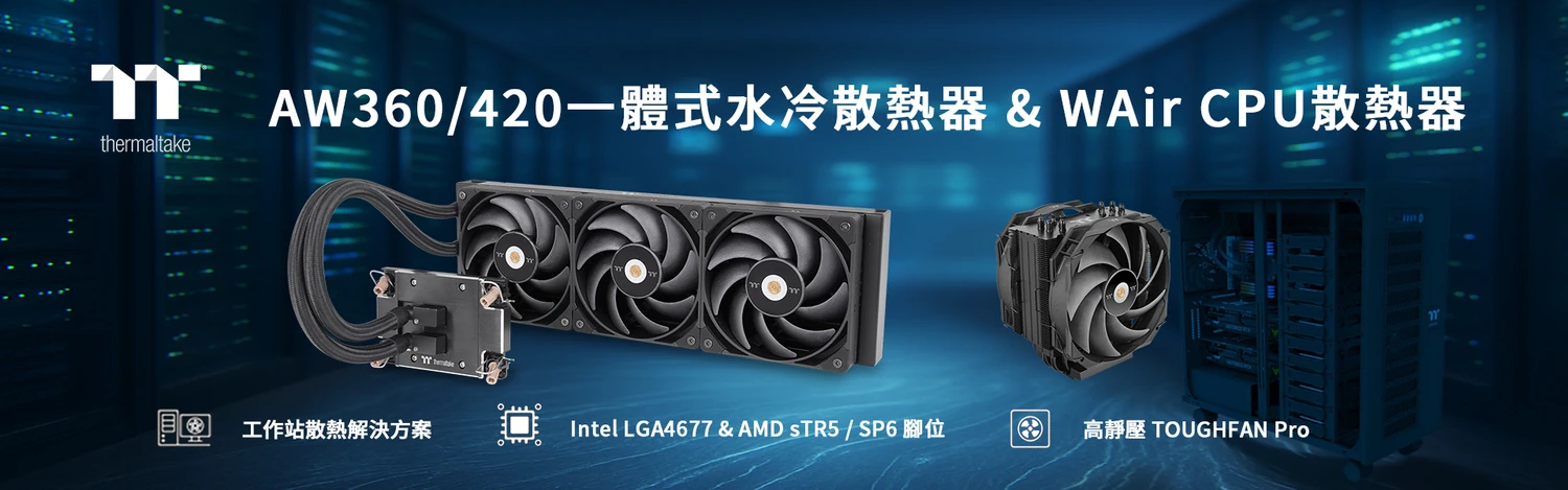 曜越 AW360 / 420 一體式水冷散熱器與 WAir CPU 散熱器結合工業級材質、先進設計及完整腳位相容性,為工作站散熱解決方案樹立新標準。無論您需要極致水冷效能,或是氣冷散熱的高效能與穩定性,曜越皆能為專業應用打造散熱方案,兩款產品即日起已透過曜越全球經銷與零售網路正式販售。