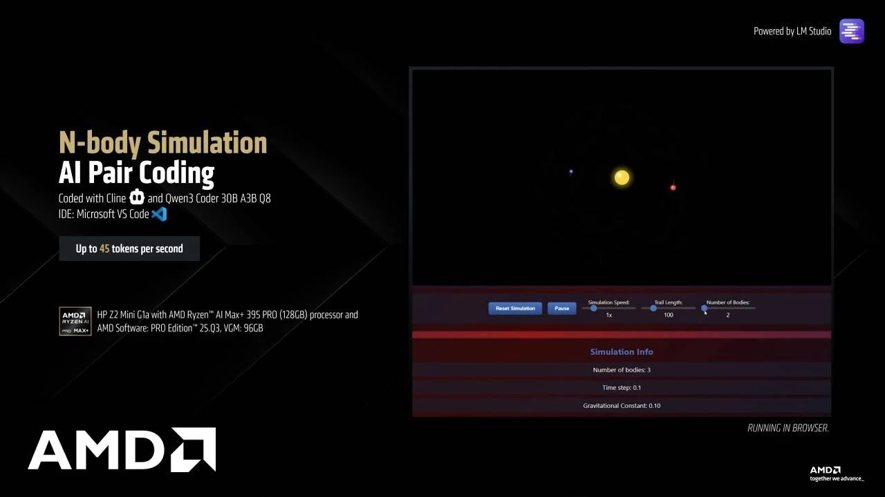 在部落格文章中,AMD 詳述如何配置 LM Studio、開源 AI 編碼機器人 Cline 以及 Visual Studio Code,從而完全在裝置上直接運行 GLM 4.5 Air 或 Qwen3-Coder 30B 等模型,無需依賴雲端推論或複雜的 API 介面,大幅簡化開發流程。