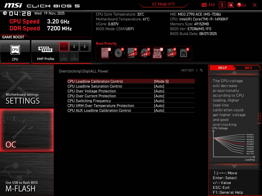 筆者一開始的打算,是用微星 LV6 = VRMLL 50,只因追求較佳的 VRM 響應速度。但同一時間筆者的 CPU 體質不算好,所以在遊戲中的電壓也相對不夠低,更被當時 BF6 BETA 的 CPU 約 200W 所熱到。因此筆者只好乖乖選用微星 LV5 = 20 和 ACLL 50,同時利用 OFFSET 補回去。也許在 0X12F 上,微星有再次調整各種 LOADLINE LEVEL 背後的 VRMLL,筆者並沒有重頭摸起。當然也有可能從 0X12B 開始就理解錯整套設定,所以在 0X12F 被徹底打臉。
