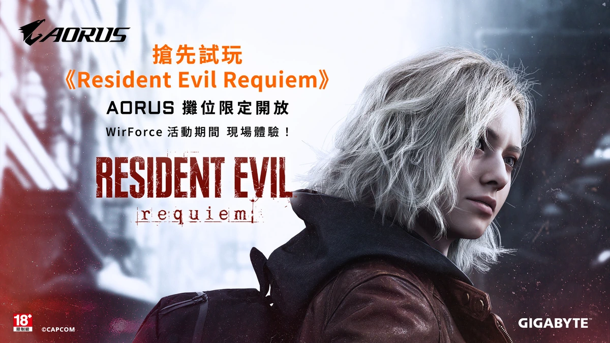 GIGABYTE 技嘉科技宣布暌違多年再度參戰 WirForce 電競嘉年華,以「 AORUS 戰鷹領域」主題重磅回歸,打造象徵速度與榮耀的電競國度。將展出頂級電競筆電、主機板與限定彩繪主機,並結合挑戰遊戲、互動體驗與人氣 KOL、COSER 同樂活動,同時還與 CAPCOM 合作,玩家能現場搶先試玩 Resident Evil Requiem。