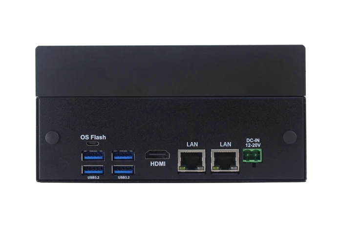 在儲存與擴充方面,EdgeComp MS-NANO 4G/8G 配備一組 M.2 Key-M (支援 2242/2260/2280 NVMe SSD),另提供 M.2 Key-B (4G/5G 模組)、M.2 Key-E (Wi-Fi / Bluetooth) 以及 Nano SIM 卡槽,滿足行動通訊需求。網路部分提供 1 組 GbE LAN 與 1 組 2.5GbE LAN,並可選配 PoE 功能。其他介面包括 4 組 USB 3.2 Type-A、1 組 Micro USB (用於系統更新)、1 組 HDMI 1.4 (顯示或除錯用途)、多組 RS232/RS232/422/485 與 CAN介面。系統並具備 3.5mm 音源介面 (Line-Out / Mic-In),以及電源鍵、重置鍵與復原鍵等便利控制。其支援 12V–20V DC 廣域電源輸入,並以 160 x 102 x 80 mm 的小巧尺寸打造,能在空間受限或需長時間 24/7 運作的環境中維持穩定傑出的表現。