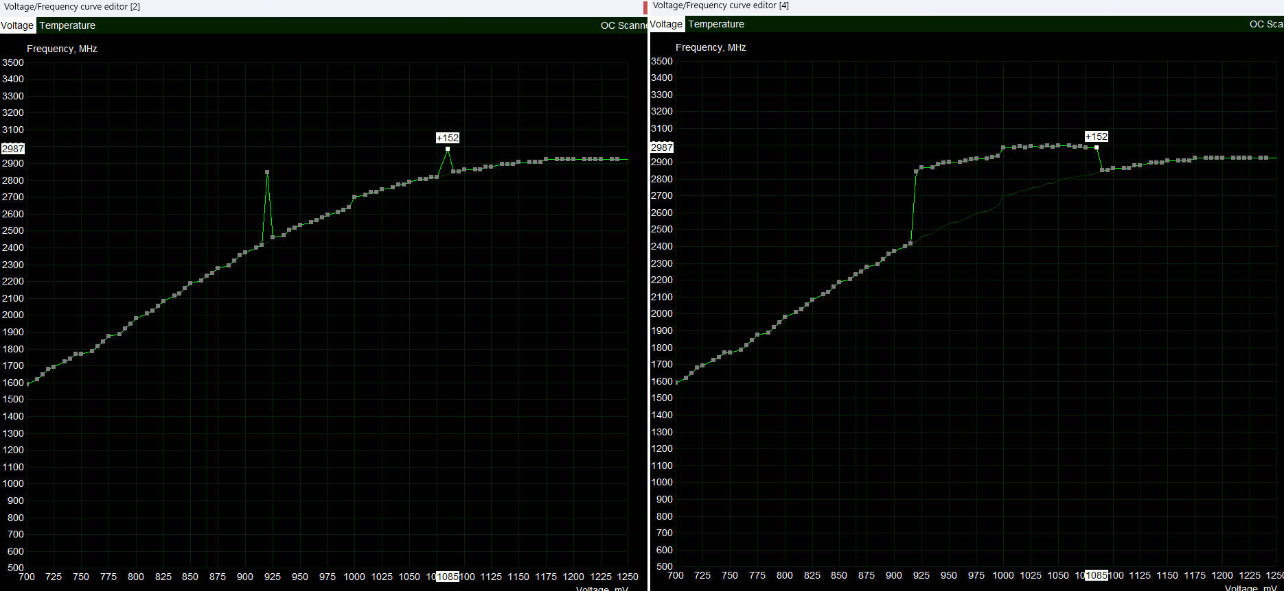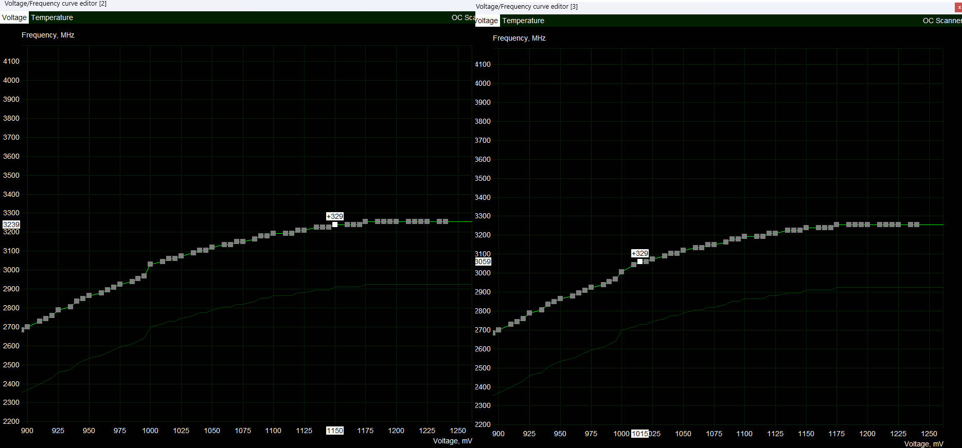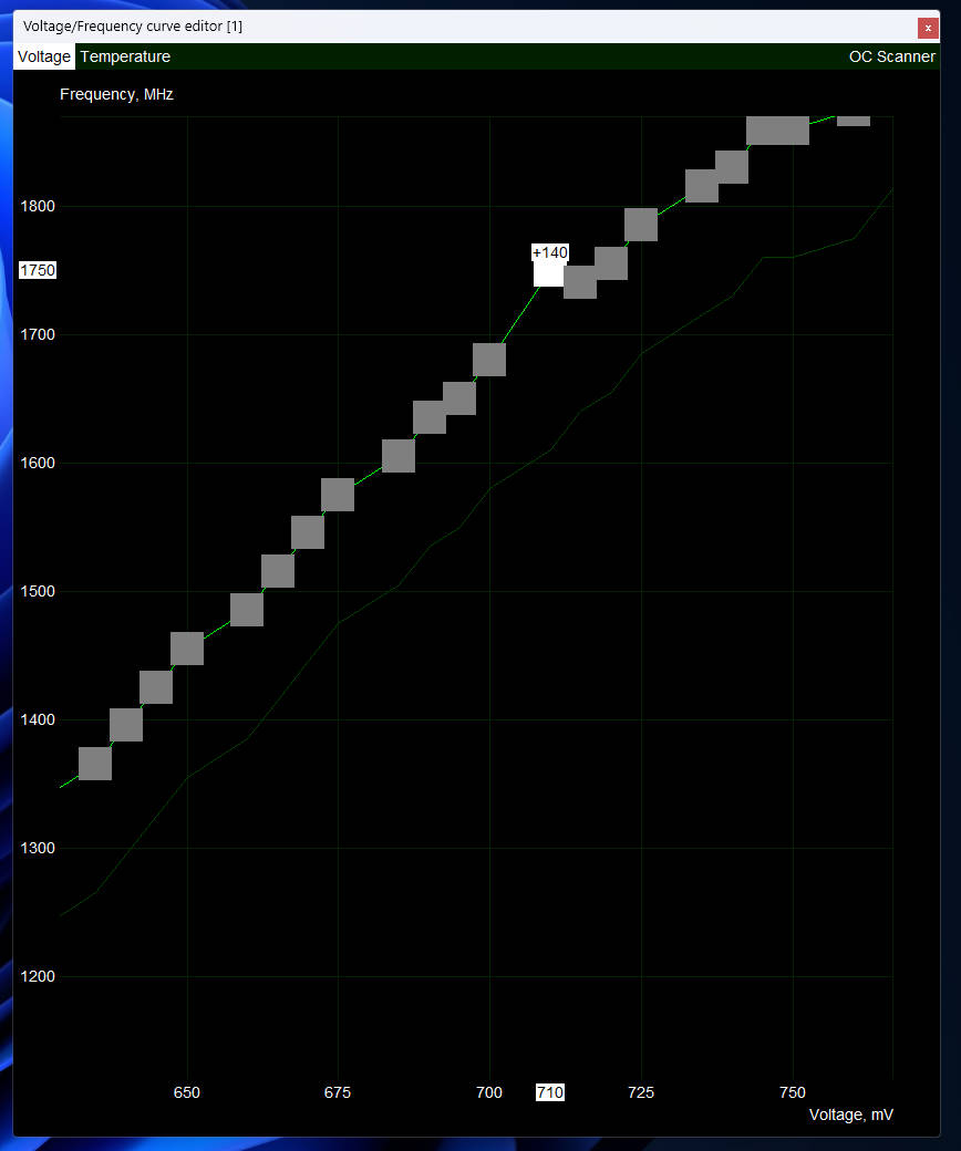 升級至 V4.6.7 BETA 1 後,VF CURVE EDITOR 的那些方格終於可以放大。按住 CRTL 接著用滾輪就能放大縮小,再按住右鍵就可移動放大的位置。放大後,要慢慢調每一格的頻率就變得更輕鬆了,不然方格太細小手抖一下已經過了。按 V 則可重回預設大小。