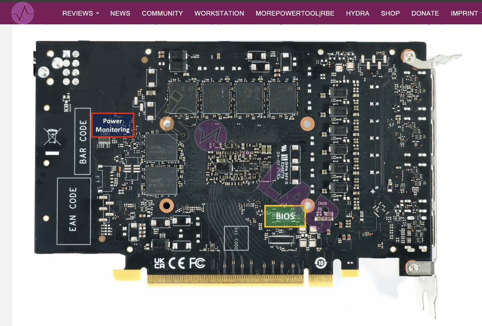 之後是 RTX 5070 TI HOF,PCB 供電用料有新意。PWM 控制器是 BPD93136,來自一家中國半導體公司,名為 上海晶丰明源 BPS。該供電模組是 BPD80690,同樣是 上海晶丰明源的產品。這是說,已經有中國半導體公司取得 NVIDIA OVR 供電規範的認證,可被用在 RTX 50 上。規格上,BPD93136 達 16 相,BPD80690 達 90A 持續輸出,屬頂級規格。以往的顯示卡中,主要的供電電路中,甚少看到中國半導體的晶片,頂多會有固態電容 / 高聚合物電容。