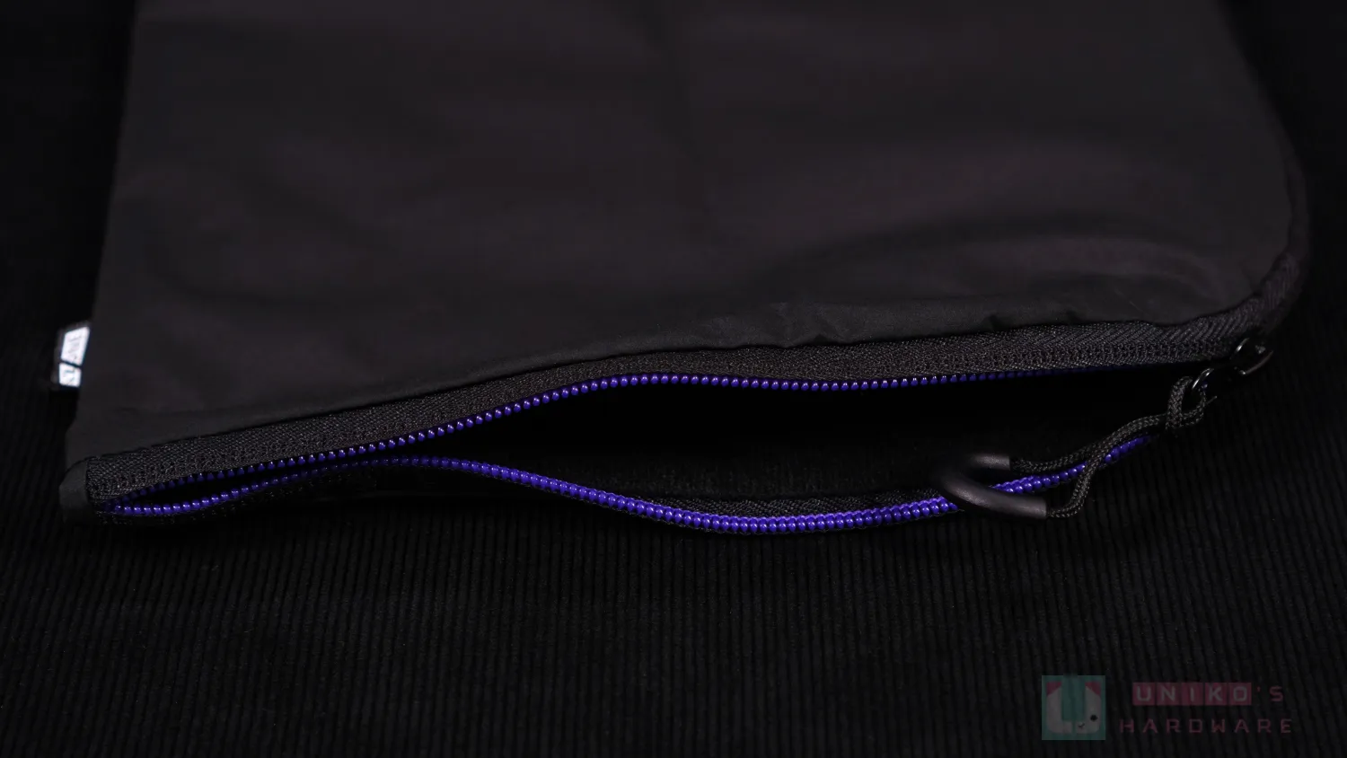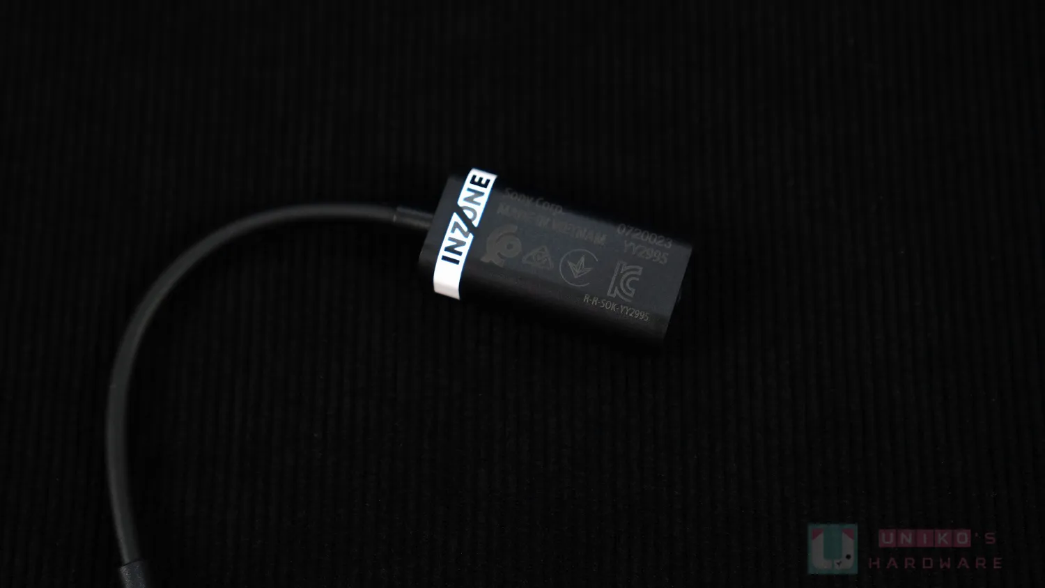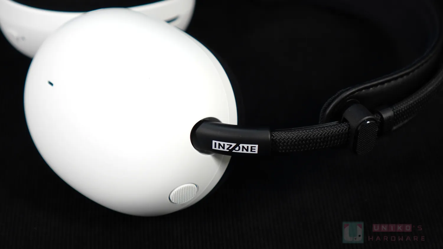 配件我們最感興趣的就是那個可攜帶的收納軟袋!小小的 INZONE 布標、隱藏拉鍊、內層跳紫色拉鍊等設計都讓其質感度提升。線材方面不只有妥善捆好,耳機線還做了圖示,讓使用者能辨別插上耳機線材的方向。可拆卸式麥克風收音區塊比起市面常見的電競耳機更大!