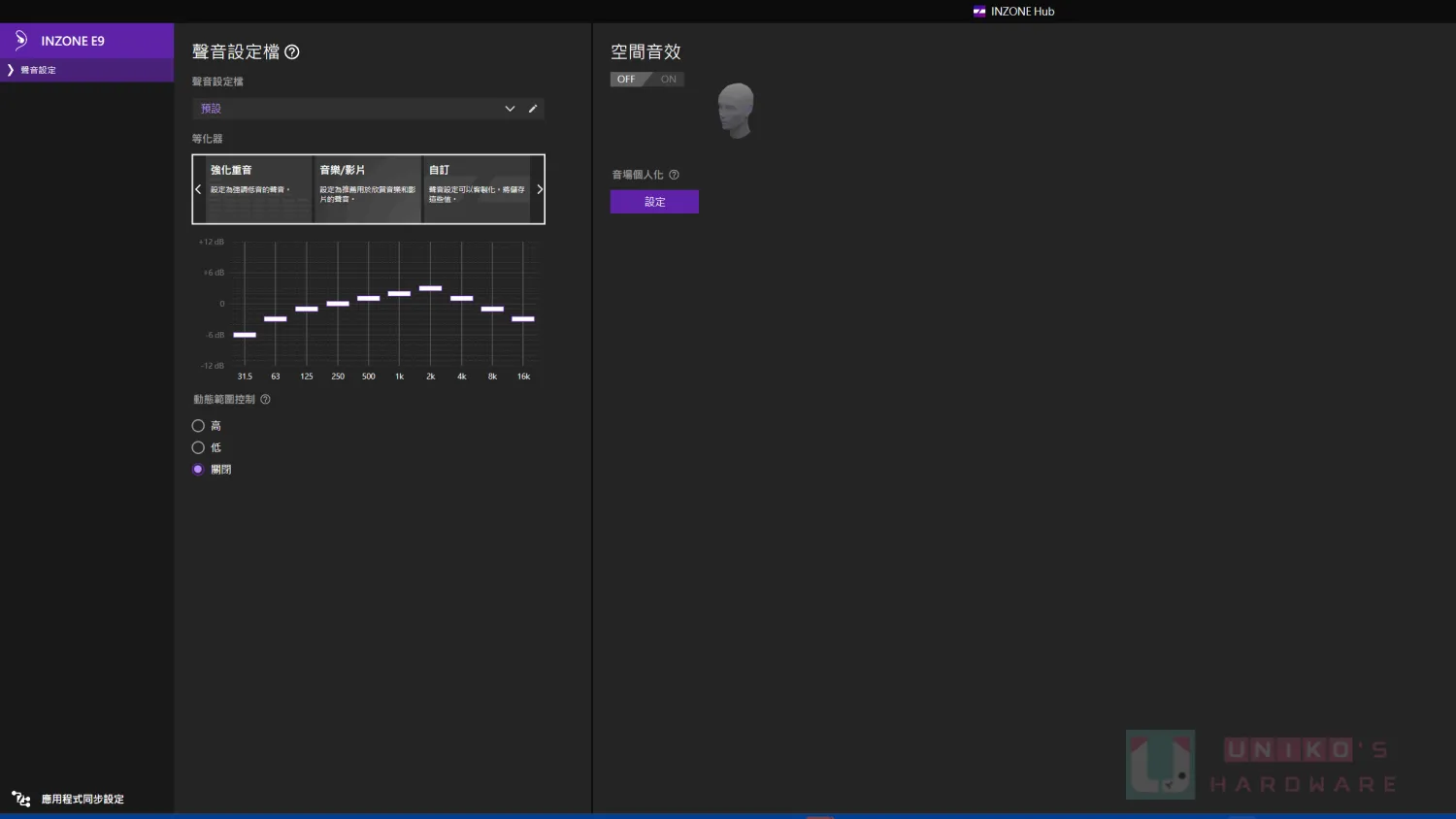 至於 INZONE E9 的頁面就比較簡單,一頁搞定,選擇你想要的設定即可。